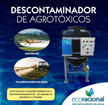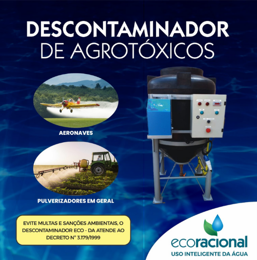 Os efluentes gerados durante a higienização de aviões e pulverizadores agrícolas contêm altas concentrações de agrotóxicos. O descarte inadequado desses resíduos no meio ambiente caracteriza crime ambiental e pode resultar em pesadas multas e sanções. Com o Descontaminador ECO-DA, você evita problemas legais e contribui para a preservação do meio ambiente. Totalmente em conformidade com o Decreto nº 3.179/1999, o ECO-DA oferece uma solução segura e eficaz para o tratamento desses efluentes.